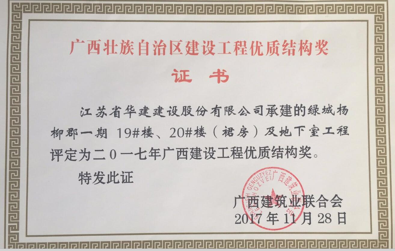北京公司2項工程獲廣西區優質結構工程獎 時間:2017-12-26 3117 近期從廣西建筑業聯合會獲悉,我公司總承包施工的廣西自治區柳州市“綠城楊柳郡一期19#、20#樓(裙房)及地下室工程”和“綠城楊柳郡一期15#樓及地下室工程”兩項工程被評定為二0一七年廣西建設工程優質結構獎,這也是北京區域公司在廣西自治區獲獎的第一個項目。 該項目開工之初就明確了爭創廣西自治區優質工程的目標,在施工中,項目部注重實體結構質量,勇于技術創新,在北京區域公司內率先使用鋁模板施工工藝,在建設單位組織的第三方多次檢測也均取得了較好的成績。