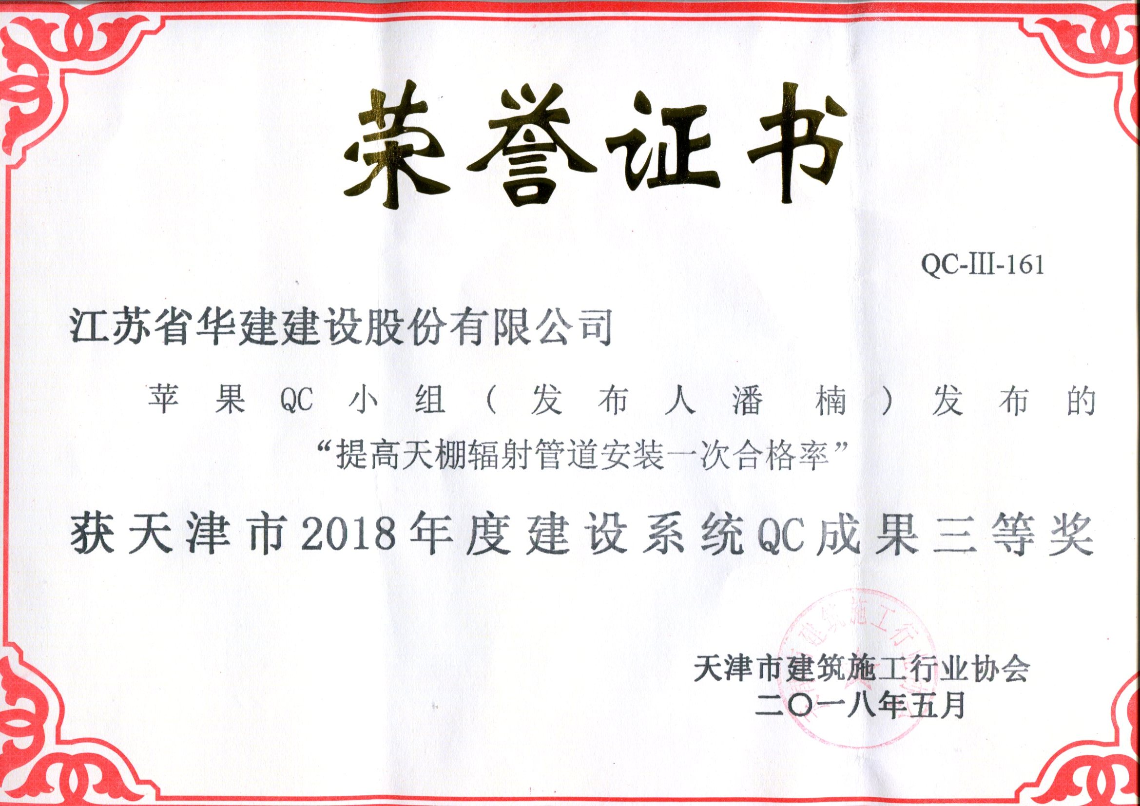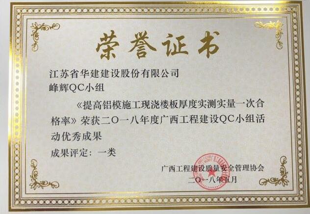 日前,北京公司有2項(xiàng)成果獲得省級(jí)表彰。蘋果QC小組“提高天棚輻射管道安裝一次合格率”榮獲天津市2018年度建設(shè)系統(tǒng)QC成果三等獎(jiǎng),峰輝QC小組“提高鋁模施工現(xiàn)澆樓板厚度實(shí)測(cè)實(shí)量一次合格率”榮獲2018年度廣西工程建設(shè)QC小組活動(dòng)優(yōu)秀成果一類成果。