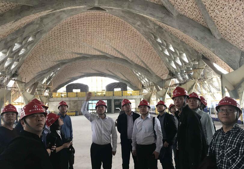 在瑪絲菲爾項(xiàng)目現(xiàn)場(chǎng),雙方重點(diǎn)交流了藝術(shù)仿生建筑的超復(fù)雜結(jié)構(gòu)施工技術(shù)和廢舊建筑垃圾轉(zhuǎn)化為裝飾材料的綠色施工技術(shù)。