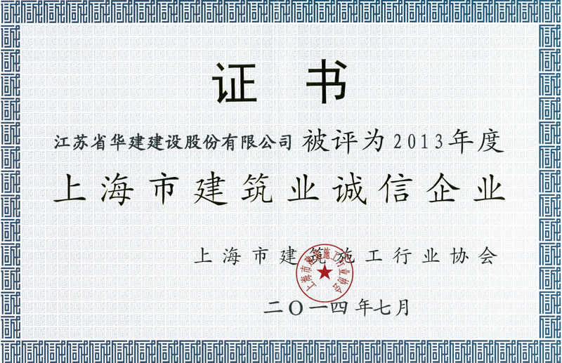 公司連續(xù)七年被評(píng)為“上海市建筑業(yè)誠(chéng)信企業(yè)”