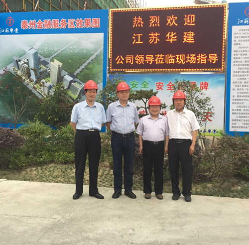 15日,宗總等領導一行親臨工地,視察由蘇北分公司承建的泰州金融服務區項目。