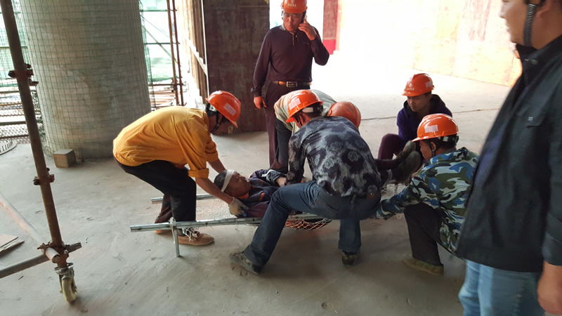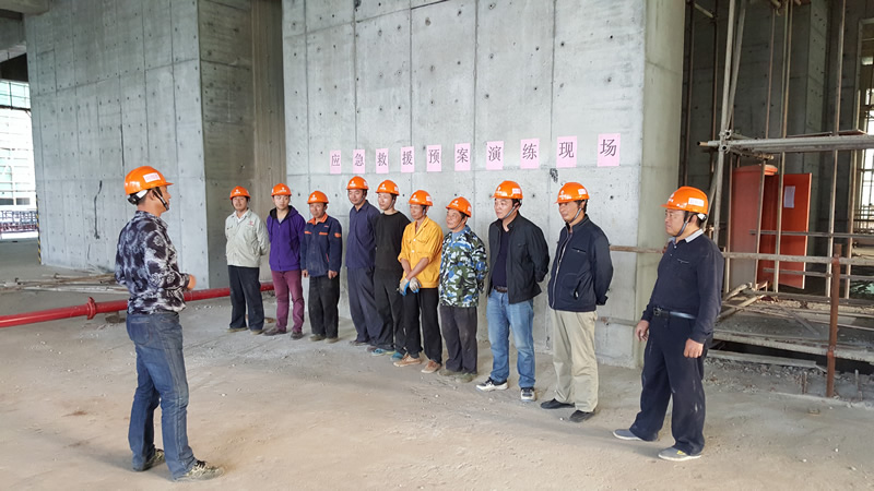 此次演練分兩個單元:第一單元是火災事故應急救援演練,按照事故報告、應急處置、現場搶險等環節緊張有序進行。第二單元是高空墜落事故應急救援演練,重點突出對受傷人員的緊急救治和現場處理的演練,演練報告快,統一指揮,救援快,協作配合一致,用較短的時間,爭取較快救治。