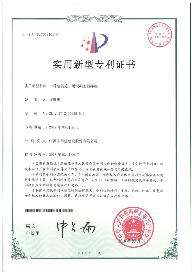 江蘇華建再獲1項發明專利、3項實用新型專利 時間:2018-06-06 3189 日前,從國家知識產權局傳來喜訊,江蘇華建上海區域公司發布的《一種用于砌體結構墻體后開洞的夾緊梁裝置及其施工方法》獲得發明專利授權(專利號:ZL201610262053.X),《一種建筑板材角磨機》(專利號:ZL201720592798.2 )、《一種建筑施工用鋼筋切斷機》(專利號:ZL201720593659.1 )、《一種建筑施工用混凝土攪拌機》(專利號:ZL201720593516.0 )獲得實用新型專利授權。