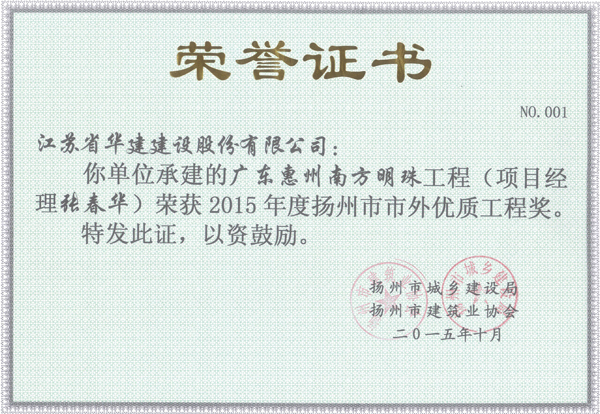 2015年揚州市市外優質工程獎