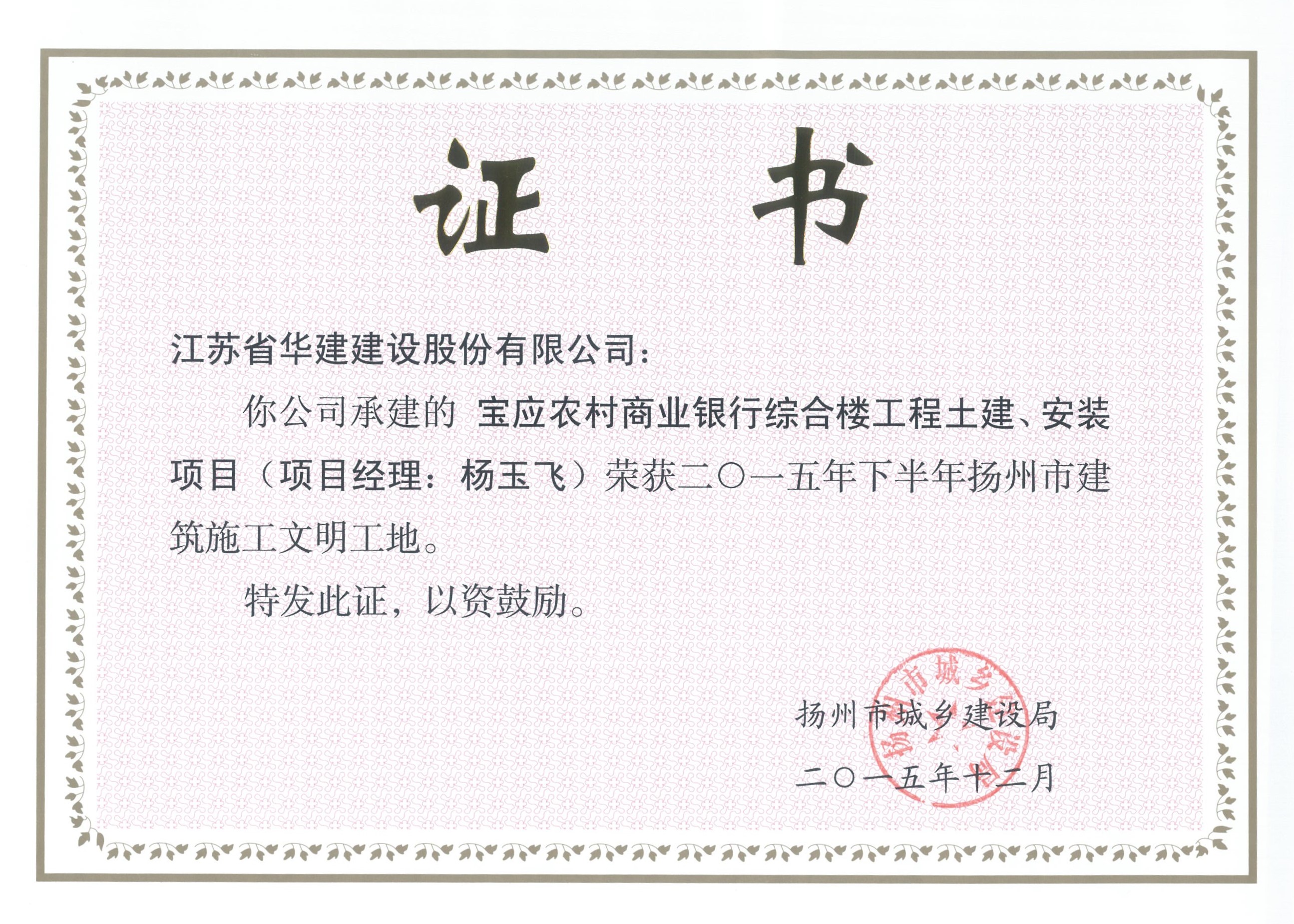 市文明工地——寶應(yīng)農(nóng)村商業(yè)銀行綜合樓