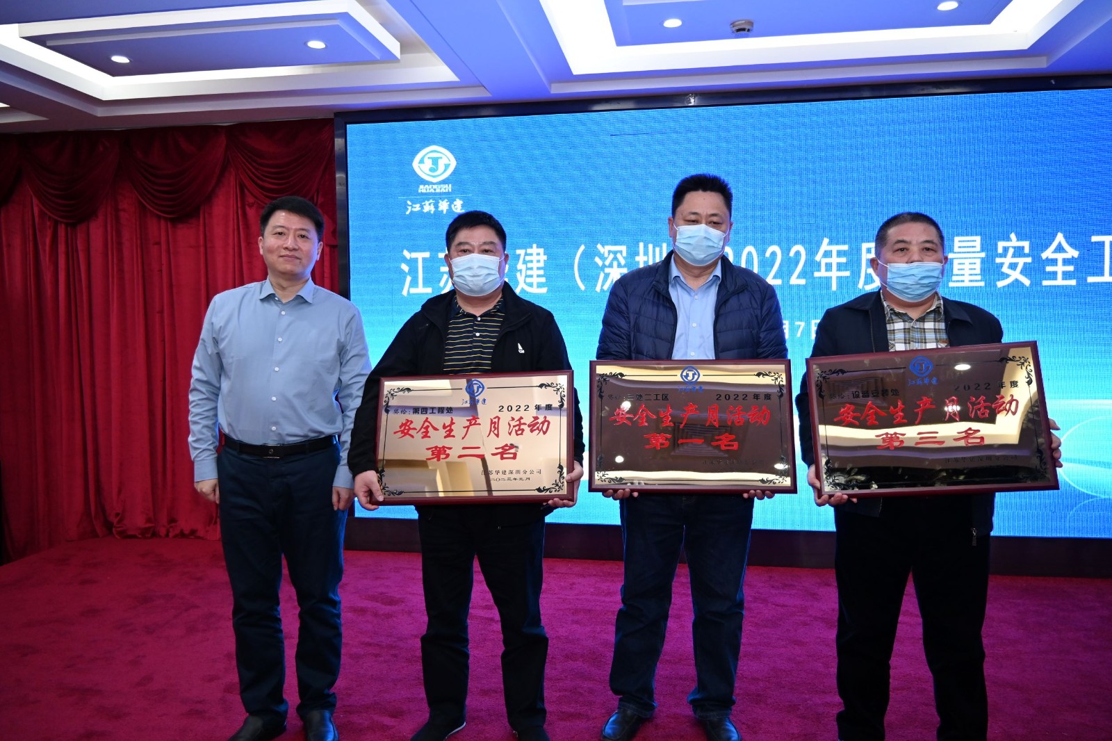 會議表彰了2022年下半年先進項目經理部、安全生產、文明施工檢查綜合評分前三名和“安全生產月”活動前三名,公司總經理吳碧橋為獲獎工程處頒發了榮譽獎牌。