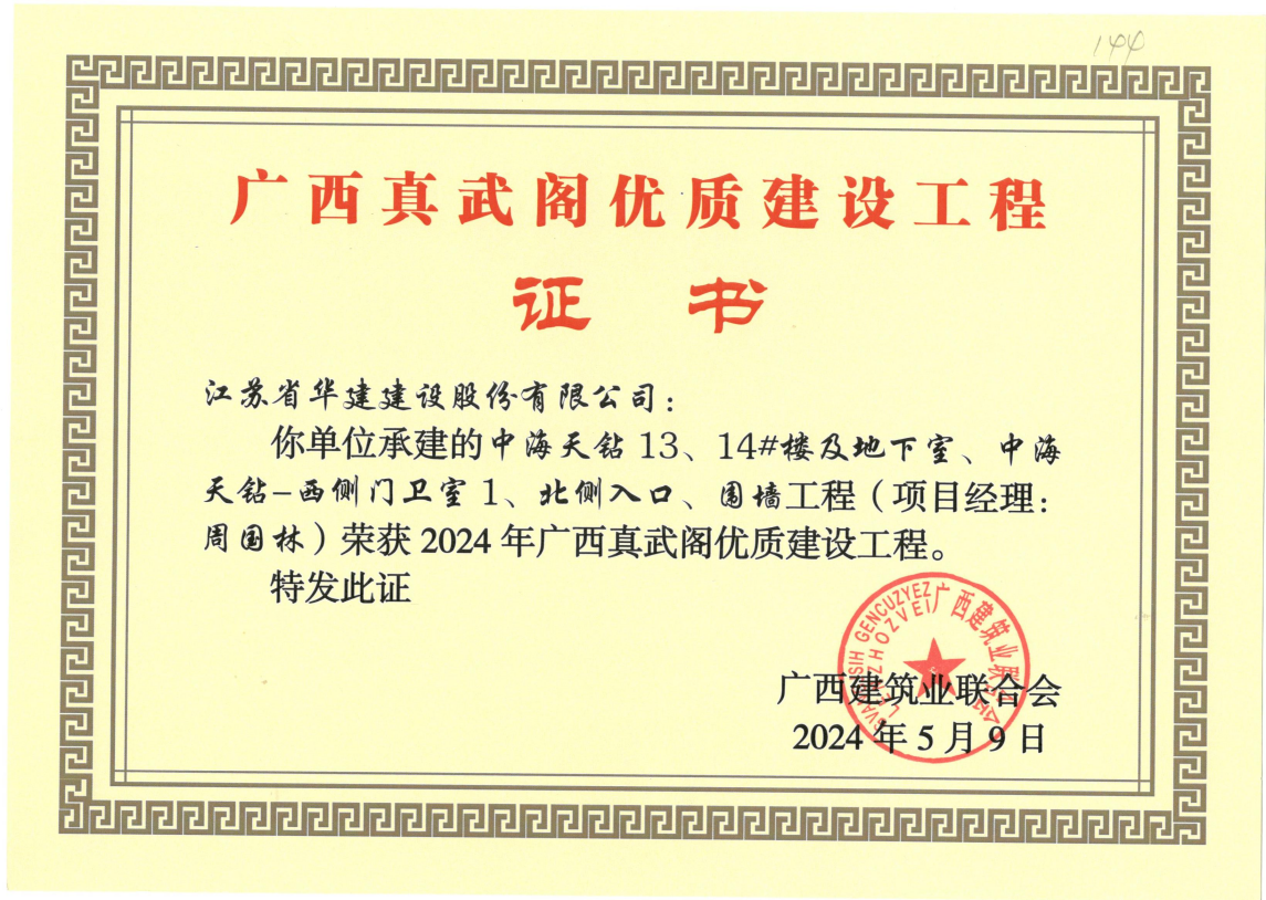近日傳來喜訊,江蘇華建北京分公司三項(xiàng)工程榮獲質(zhì)量獎。中海天鉆13、14#樓及地下室、北側(cè)入口、圍墻工程和中海天鉆11、12#樓及地下室分別獲2024年廣西建設(shè)工程“真武閣杯”獎;中海望京府1#樓工程獲包頭市“金鹿杯”獎。