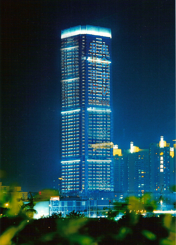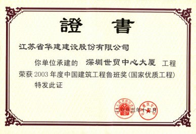 深圳國際商會中心位于深圳市福田中心區6-3地塊,是深圳市CBD標志性建筑,與會展中心隔街相望,是深圳會展經濟圈的地標,也是深圳第一座擁有智能門禁系統、第一座擁有酒店式行車大廳、中心區第一座擁有商務直升機停機坪的寫字樓。 本工程是集辦公與商業為一體的超高層民用建筑,地下3層地上55層,總建筑面積為134081.38平方米,建筑高度216米,結構形式上,主樓為內筒外框勁性混凝土結構,外墻裝飾主要采用玻璃幕墻,干掛花崗巖和復合鋁板。本工程于2002年9月3日開工,2004年12月16日竣工。2003年下半年被評為深圳市優質結構工程,2004年下半年先后通過了深圳市建筑業新技術應用示范工程驗收和江蘇省第八批新技術應用示范工程驗收,新技術應用“總體上達到國內領先水平”。此工程應用了建筑業10項新技術中的9項,其他新技術8項,重點創新新技術2項。在施工過程中,多次受到有關各方組織的觀摩會、參觀會,2005年獲深圳市優質工程“金牛獎”、廣東省“金匠獎”、江蘇省“揚子杯”,并榮獲“中國十大金牌寫字樓”榮譽稱號。2006年獲全國建筑最高獎——魯班獎。