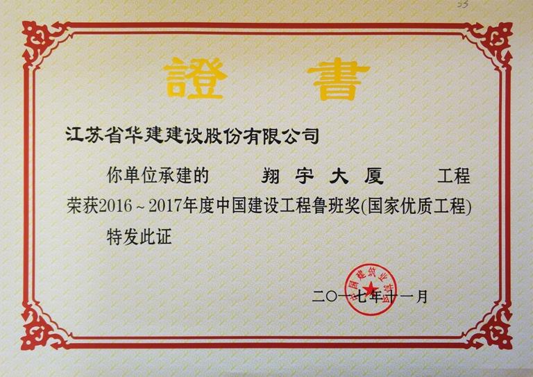 翔宇大廈工程位于淮安市生態(tài)新城核心示范區(qū),北鄰景會(huì)路、西鄰致遠(yuǎn)路、南面為篆香樓路,交通便利地,由淮安新城房地產(chǎn)開發(fā)有限公司投資,東南大學(xué)建筑設(shè)計(jì)研究院設(shè)計(jì),江蘇省華建建設(shè)股份有限公司總承包施工,總建筑面積90300平方米,其中地上72036平方米,地下18264平方米。工程由南北主樓、中裙樓和北裙樓組成,南主樓20層,北主樓22層,建筑高度88.6米,主體結(jié)構(gòu)為鋼筋混凝土框架剪力墻結(jié)構(gòu),基礎(chǔ)為樁+筏板基礎(chǔ)。該工程于2011年7月18日破土動(dòng)工,于2014年9月9日竣工。該工程被評(píng)為住建部綠色施工科技示范工程、國家AAA級(jí)安全文明標(biāo)準(zhǔn)化工地和江蘇省建筑業(yè)新技術(shù)應(yīng)用示范工程。2016年被中建協(xié)評(píng)為2016—2017年度中國建設(shè)工程魯班獎(jiǎng)(國家優(yōu)質(zhì)工程)。