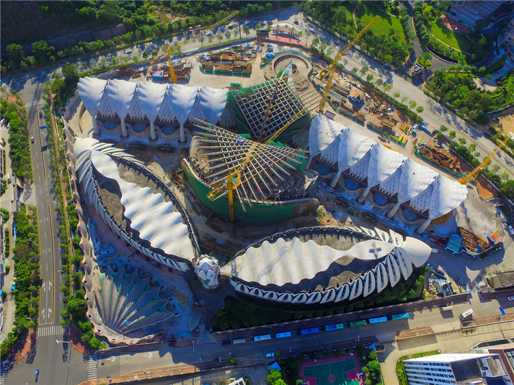 瑪絲菲爾總部中心位于深圳龍華大浪時尚小鎮,占地面積49800m2,建筑面積11萬㎡,總投資10億元。工程建筑外形采用當前最為時尚、最具風格的現代仿生學設計理念,所有建筑元素設計靈感都源于自然。建筑群俯視猶如展翅雄鷹,構件造型都按拋物線、螺旋線等幾何規律設計。該建筑為國內目前面積最大的仿生藝術建筑、深圳龍華時尚小鎮的代表性建筑,在國內建筑界引起了包括中國工程院院士在內的建筑專家的關注,未來有望成為國內時裝秀的主會場。工程于2009年7月開工,目前一期工程裝修完成50%,二期工程主體結構基本完成,進入裝修階段。一期工程1、2號廠房設有27對計54個葉片,每對葉片造型都不一致。中間設蓮花狀交通塔,屋頂設有波浪狀屋蓋。二期工程3、4號廠房分別設有6個雙曲葉面板、5片網格梁和22個Y型鋼柱。