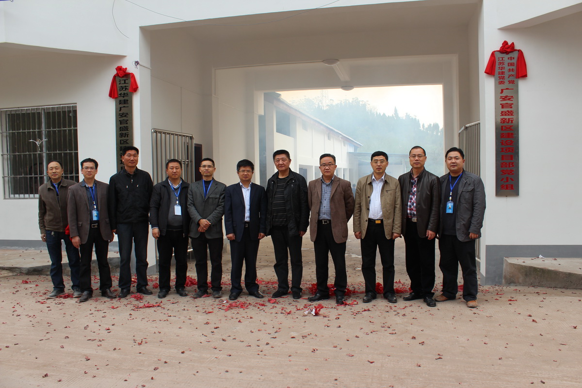 廣安項目指揮部及黨小組舉行揭牌儀式 時間:2014-03-19 5990 2014年3月18日,江蘇華建副總經理陸俊、工程部經理丁華與江蘇華建副總經理、珠海區域公司總經理繆國樞、珠海區域公司副總經理嚴正濤、總會計師馮喜平一起,參加江蘇華建四川廣安官盛新區基礎設施暨美好家園建設項目指揮部及黨小組的揭牌儀式。