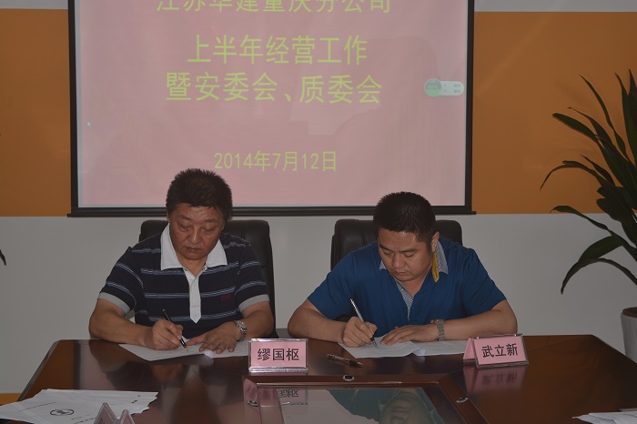 珠海區域公司總經理繆國樞主持會議,并宣讀了《關于成立重慶分公司安委會、質委會的決定》。珠海區域公司副總經理、重慶分公司副總經理嚴正濤匯報了重慶分公司上半年的工作開展情況和下半年的工作打算。會議通報了上半年珠海區域公司安全、質量大檢查的情況,全體參會人員對重慶分公司安委會、質委會成立的相關制度及材料進行了討論。最后,繆國樞總經理分別與各工程處主任、直管項目部經理簽訂安全、質量目標責任書。