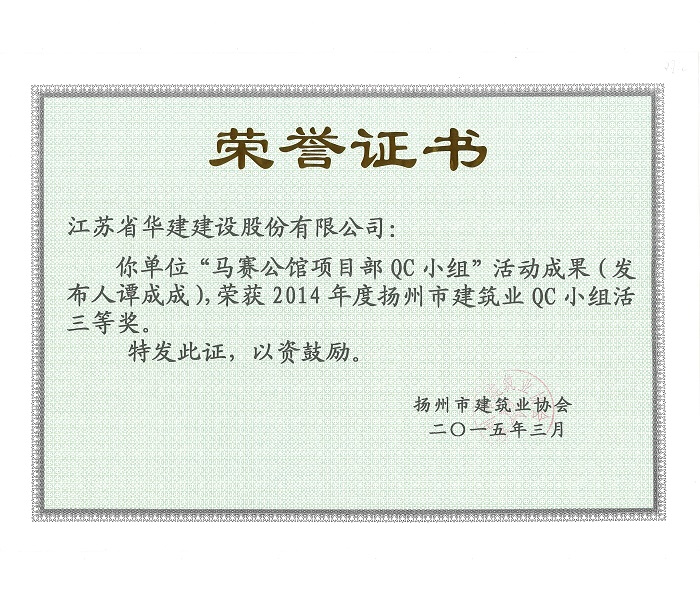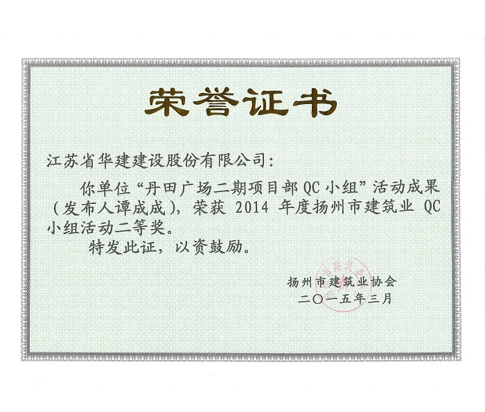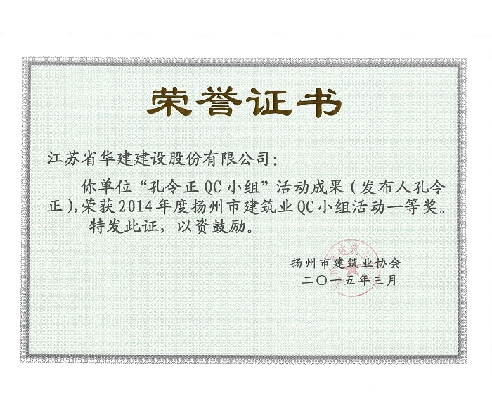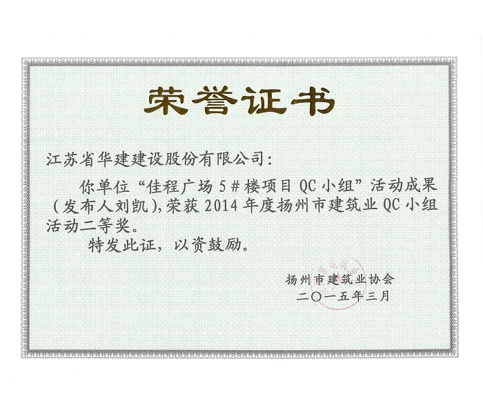 公司5項成果獲揚州市建筑業(yè)QC成果獎