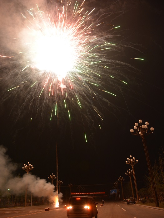 8點半,在蓮花大道及官盛春天1#樓現場同步進行了焰火燃放,慶祝蓮花大道下段順利竣工驗收及項目安置房首個樓棟主體結構封頂。
