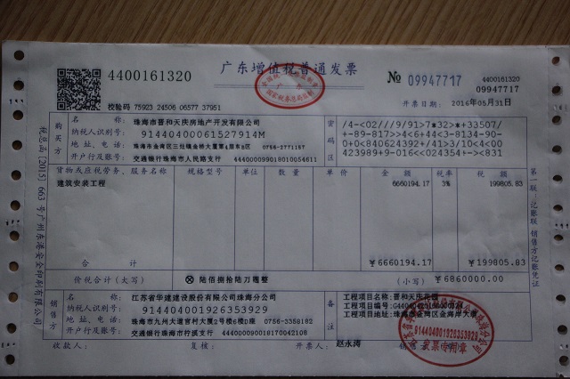 5月31日,財務處成功開了第一張增值稅普通發票,此票為公司第五項目部承擔施工任務的晉和天慶花園總承包工程使用,走出了公司“營改增”工作的堅實一步。