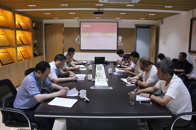 2017年6月11日,江蘇華建總經(jīng)理宗有農(nóng)、副總經(jīng)理、總工程師程杰、審計(jì)部經(jīng)理王琳及辦公室主任余濤一行蒞臨珠海區(qū)域公司,開展年中調(diào)研工作。區(qū)域公司經(jīng)營層、各部室負(fù)責(zé)人參加調(diào)研會(huì)議。