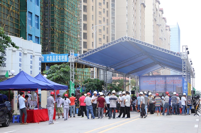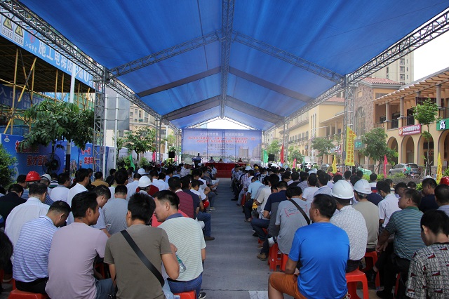 “2017年陽江市建筑工程安全生產文明施工示范工地現場觀摩會”之后,9月6日,陽江市“2017年建筑施工質量月和工程質量安全提升活動啟動儀式暨現場觀摩交流會”再次在我公司總包承建的陽光馬德里項目現場隆重舉行。陽江市住房規劃建設局分管質量安全副局長張牛、市質安監站站長林子歡、市建筑協會會長梁榮照市建管科、質安監站全體人員,各縣(市、區)住房規劃建設局分管質量安全副局長、建管股股長、質監站站長,市直各施工企業和監理企業分管工程質量領導、質安部門負責人,市區在建工程建設單位代表,施工單位項目經理、質量員,監理單位項目總監和專業監理工程師,各縣(市、區)在建重點項目建設單位代表、施工單位項目經理、監理單位項目總監等400余人參加大會并觀摩陽光馬德里二期56-61棟施工現場。