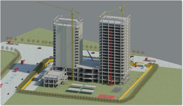 橫琴隆義廣場項目位于珠海橫琴自貿區,工程造價為16000萬元,建筑面積約60000平方米,由1棟17層和1棟20層的塔樓組成,最大高度為85.8米,合同工期730天。建成之后將成為橫琴島上的高檔酒店和寫字樓。該工程運用BIM技術,珠海公司聯合華建設計院建立項目BIM設計模型,完成了多專業碰撞檢查、模型二次深化設計、凈高分析工作。此外,公司在項目施工中還基于高精度BIM施工模型做到了施工臨時場地布置、BIM樣板引路、機電管線綜合優化、鋁合金模板預拼裝、腳手架系統深化設計、動態可視化交底、施工進度計劃及造價控制等工作的優化管理,項目結合二維碼的協同管理云平臺,實現了“工廠預制加工”“掃碼組裝”“二維碼安全技術交底”“設備信息錄入”等智能化操作,在保證施工質量的同時也極大地提高了協同工作的效率,使項目在施工成本、進度、安全、質量等方面的管理效率得到了巨大提升。