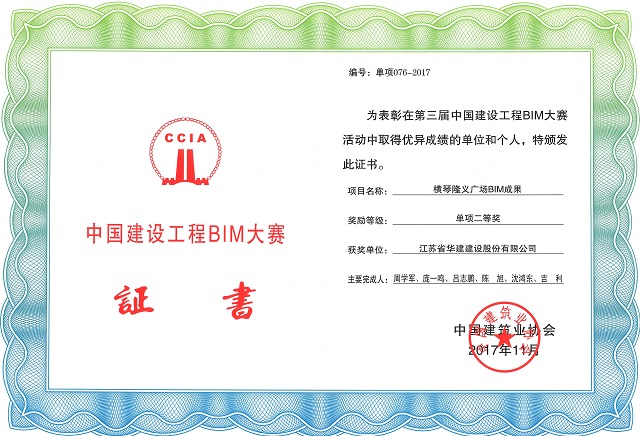 12月20日,由中國建筑業協會主辦的第三屆中國建設工程BIM大賽結果正式公布江蘇華建珠海公司申報的《橫琴隆義廣場BIM成果獲得單項組二等獎。