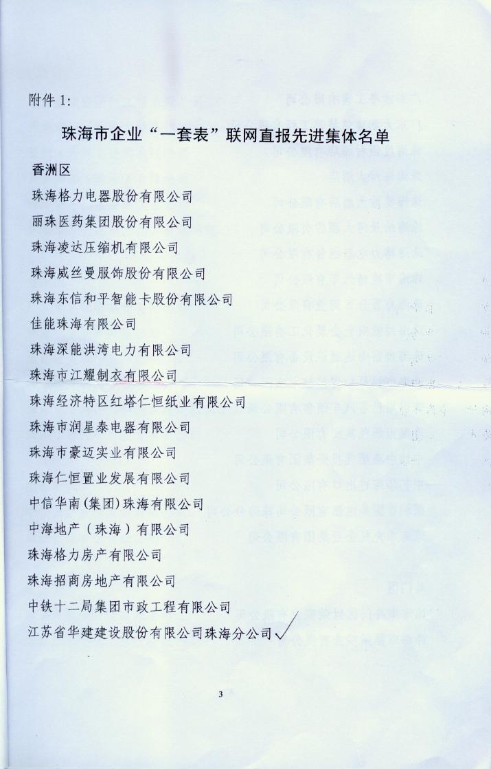 2013年珠海市統計局一套表聯網直報工作先進單位