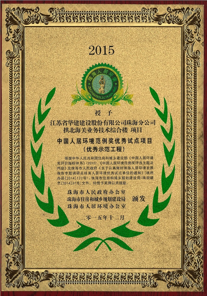 拱北海關(guān)業(yè)務(wù)技術(shù)綜合樓榮獲中國(guó)人居環(huán)境范例獎(jiǎng)優(yōu)秀試點(diǎn)項(xiàng)目(優(yōu)秀示范工程) 時(shí)間:2015-12-22 5185