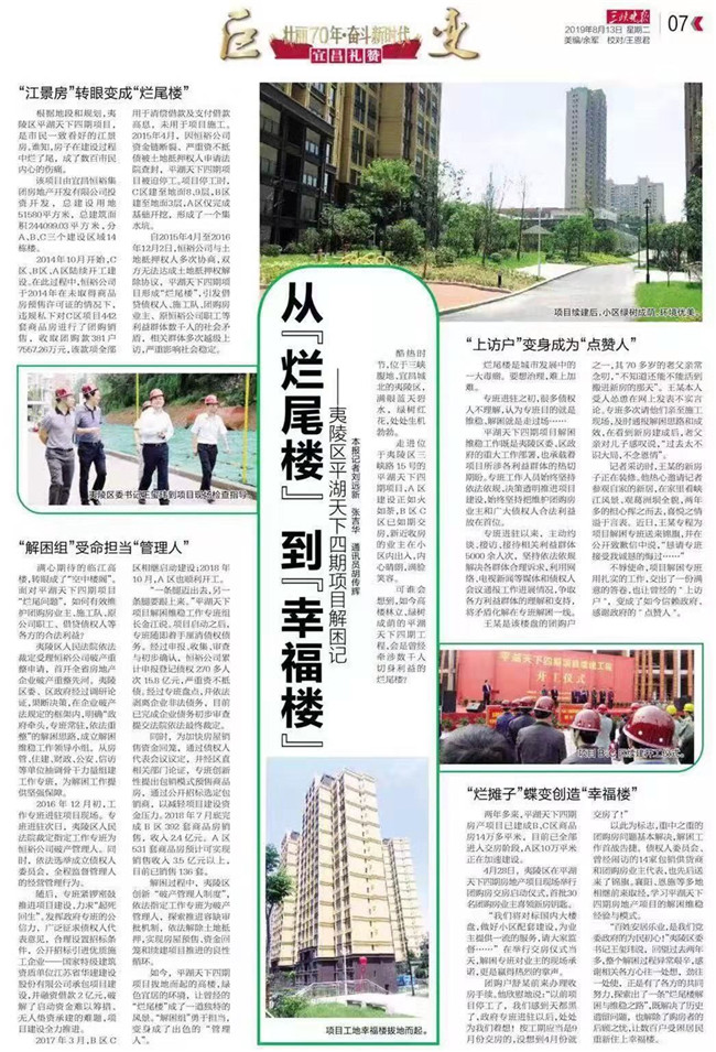 《三峽晚報》8月13日第7版整版報道了江蘇華建宜昌分公司總承包建設的平湖天下四期項目。該項...