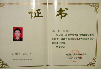 他本人因成績突出,工作勤勉,先后獲得“揚(yáng)州市青年突擊手”、全國工程建設(shè)優(yōu)秀項目經(jīng)理等榮譽(yù)稱號。