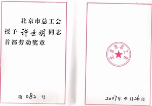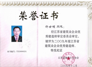 許世明所帶領(lǐng)的團(tuán)隊(duì)先后獲得“北京市優(yōu)秀青年突擊隊(duì)標(biāo)桿”、“全國職工職業(yè)道德建設(shè)百佳集體”、“北京市工人先鋒號”、“北京市模范集體”等榮譽(yù)稱號;其本人先后獲得“揚(yáng)州市建工系統(tǒng)優(yōu)秀共產(chǎn)黨員”、“江蘇省優(yōu)秀項(xiàng)目經(jīng)理”、“北京市優(yōu)秀青年工程指揮”、“第二屆北京市創(chuàng)業(yè)青年首都貢獻(xiàn)獎”、“首都勞動獎?wù)隆薄ⅰ敖K省建筑業(yè)企業(yè)優(yōu)秀建造師”等榮譽(yù)稱號,許世明同志還被選拔為 “江蘇省333高層次人才培養(yǎng)工程”中青年科學(xué)技術(shù)帶頭人。