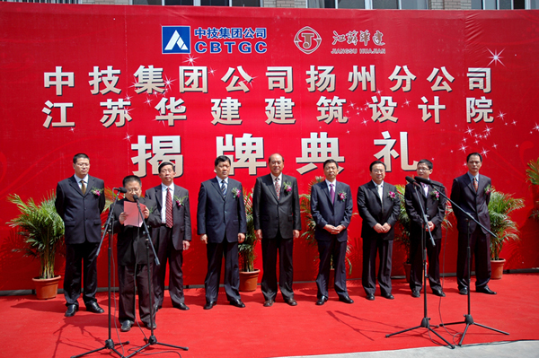 江蘇華建建筑設計院、中技集團揚州分公司舉行隆重揭牌典禮 時間:2009-04-18 11770 4月18日,江蘇省華建建設股份有限公司建筑設計院、中國建筑技術集團有限公司揚州分公司舉行隆重揭牌典禮。這是我公司與中技集團開展戰略合作、尋求優勢互補的創新之舉,對兩個知名品牌強強聯合、共利雙贏具有重要意義。典禮由公司副總經理程杰主持,中技集團董事長黃強、公司董事長陸金龍、江蘇華建設計院院長黎裕華、中技集團揚州分公司總經理施衛東先后發表講話。中技集團副總裁王京豐,公司領導吳士茂、徐仁國、陳榮春參加儀式。