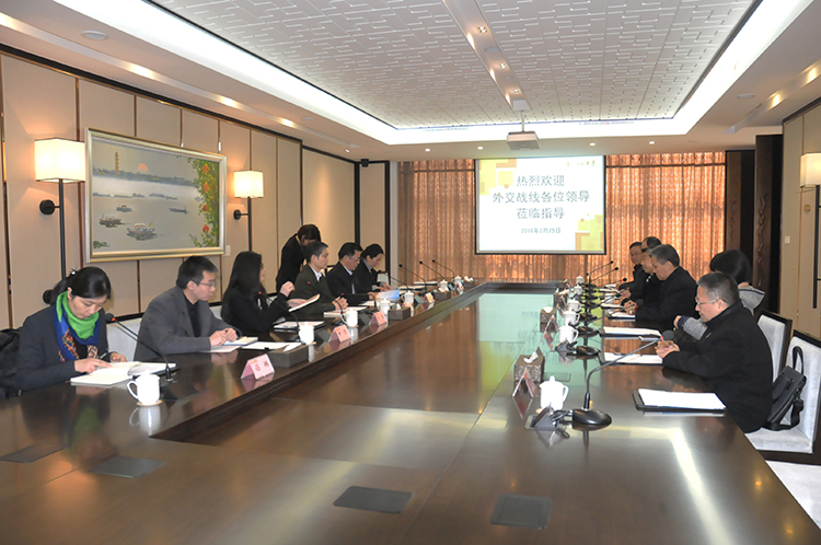 2月25日上午,國家外交部外事管理司廖力強司長、中央外辦外管局宋軍處長等一行5人,在省外辦副主任張松平、揚州市副市長汪志堅、市外辦副主任徐靜等陪同下,到江蘇華建開展外事工作服務企業(yè)發(fā)展專題調研,公司領導陸金龍、陳榮春、程杰、陸俊等一同接待。