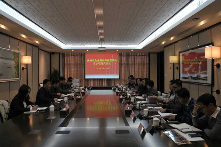 3月24日下午,揚州市企業海外開拓促進會在江蘇華建企業展示中心會議室召開首次聯絡員會議,市商務局副局長陳建、市外辦副主任蔣旭東出席會議,常務副會長、市建工控股公司副總經理吳士茂主持會議,秘書長、執行秘書長、副秘書長及其他秘書處工作人員參加會議。