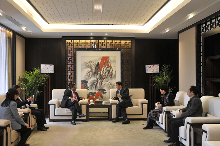 4月7日下午,來揚出席“中國揚州——印度創(chuàng)新與產(chǎn)業(yè)投資論壇”的印度駐滬總領(lǐng)事Prakash Gupta(古光明)專程到江蘇華建訪問,市海促會常務(wù)副會長、揚州建工控股公司副總經(jīng)理兼江蘇華建監(jiān)事會主席吳士茂會見了古光明領(lǐng)事。古光明領(lǐng)事在參觀了華建展示中心后,介紹了印度政府針對外商投資的新政以及潛在的投資項目,如道路公路交通、港口運輸、電力、民航、鐵路在內(nèi)的基礎(chǔ)設(shè)施建設(shè)產(chǎn)業(yè),以及未來5年內(nèi)印度擬建設(shè)100個智慧城市等相關(guān)信息,希望華建這樣的優(yōu)秀企業(yè)能盡早到印度尋找發(fā)展機會。吳士茂主席感謝古光明領(lǐng)事對華建的信任,表示華建將緊跟國家“一帶一路”發(fā)展戰(zhàn)略,認真研究印方提供的項目信息,爭取積極參加印度的發(fā)展建設(shè),共同推進合作共贏。