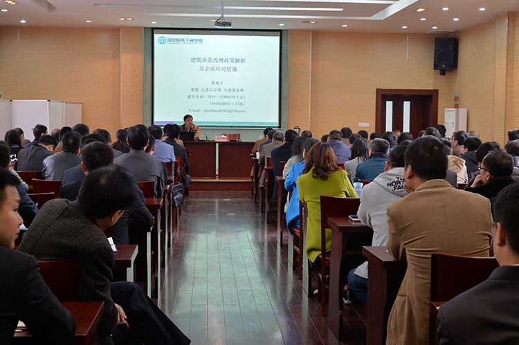 此次培訓特邀市國家稅務學院陳斌才教授主講。陳教授就建筑業營改增政策及企業應對措施作了專業分析和講解,并與參人員進行了互動交流,使參培人員對建筑業營改增有關政策有了更深刻的理解和認識,達到了預期效果。