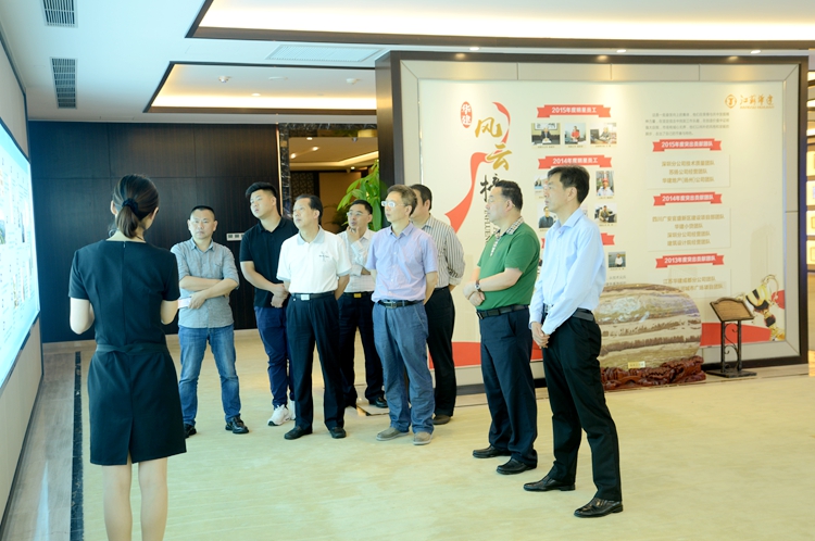 在陸金龍董事長的陪同下,邵威遠總經理一行首先參觀了公司企業展示中心,在了解了公司的發展歷程、業務板塊、創優創新、企業文化等方面的情況后,邵總對華建公司近年來的發展與變化表示充分贊同。