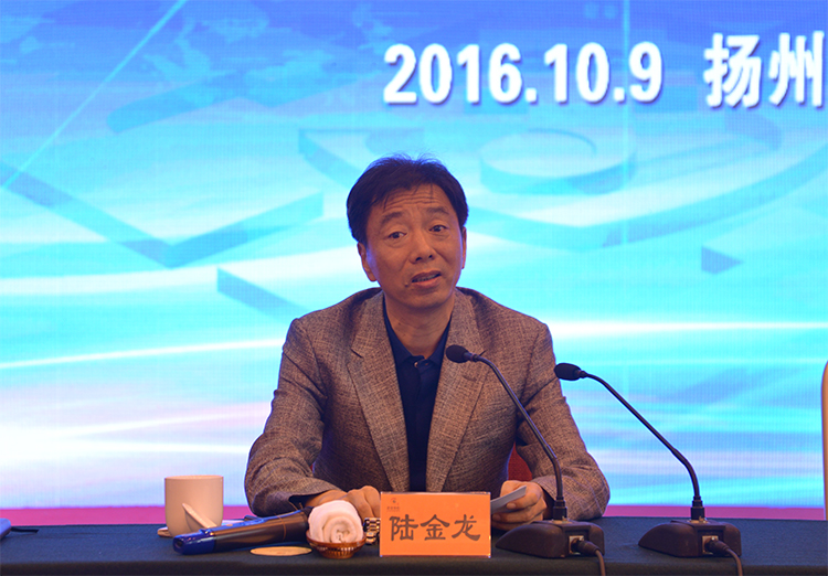 ▲揚(yáng)州生態(tài)科技新城黨工委書(shū)記、華建聯(lián)盟名譽(yù)主席陸金龍講話(huà)