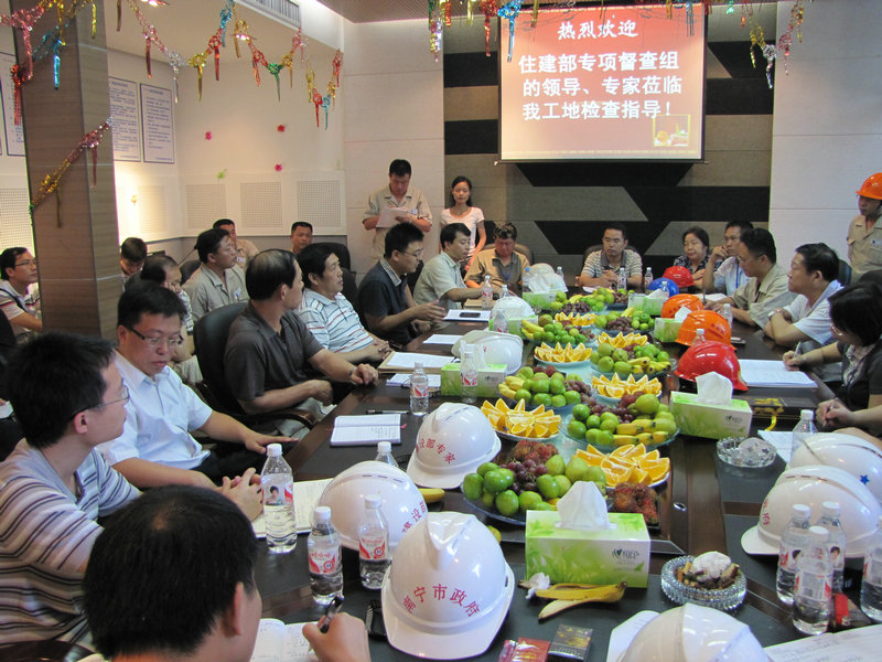 住建部建筑施工安全專項督查組檢查指導廣西麗原•天際城項目 時間:2010-10-14 5305 9月18日上午,國家住房城鄉建設部建筑施工安全專項督查組蒞臨我公司廣西麗原·天際城工地檢查指導工作,勘察了施工現場的實體安全狀況,查閱了施工質量安全技術資料,檢查了我公司的資質、安全許可、三類人員與特種作業人員持證的情況。項目部的安全防護與文明施工工作受到了督查組的一致好評,住建部工程質量安全監管司王樹平副司長在知道我們爭創“魯班獎”的情況后,提出了許多寶貴的意見,并預祝我們的質量目標得以圓滿實現。 另訊,此前麗原·天際城工程項目被評為2010年上半年廣西自治區文明工地。