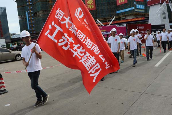 江蘇華建積極響應海口市“雙創”活動 時間:2015-09-01 2855 8月29日上午,海口市龍華區“雙創”啟動大會在我公司承建的恒大外灘中心項目現場召開,龍華區區委書記王東等領導出席啟動儀式,公司副總、海南分公司總經理王宏到會并做表態發言。 隨后,會場舉辦“我愛海口,力爭雙創”授旗儀式,并組織志愿者“自掃門前雪”,手拿掃把、簸箕等工具,將所屬衛生轄區打掃得干干凈凈,以實際行動來踐行“雙創”工作。