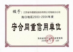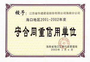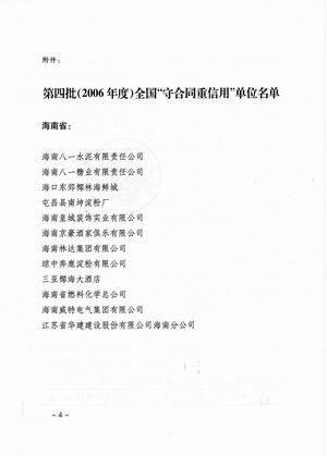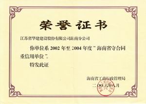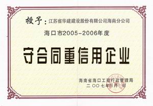 企業誠信榮譽 時間:2019-01-01 8894 2001-2002年度海口市守合同重信用 2003-2004年度海口市守合同重信用 2005-2006年度海口市守合同重信用 2002-2004年度海南省守合同重信用 2006年度全國守合同重信用1 2006年度全國守合同重信用2 2006年度全國守合同重信用3 2006年度全國守合同重信用4 2012年度海南省守合同重信用